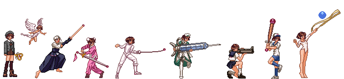 - Kuru Kuru Poi: Popura transforms into a gymnast and attacks the enemy with ribbons. Can also be done while dashing.